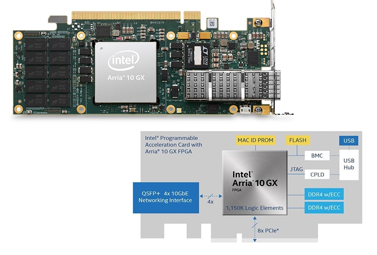 The Intel® Programmable Acceleration Card (PAC) with Intel Arria® 10 GX FPGA is a PCIe-based FPGA accelerator card for data centers supporting both inline and lookaside acceleration.