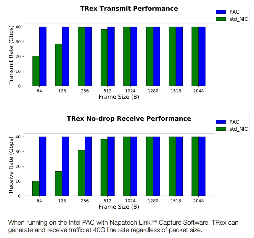 TRex performance In addressing this challenge, Napatech has created a hardware acceleration solution that greatly increases TRex performance. This has been achieved by making the Napatech Link™ Capture Software available as an Acceleration Stack for the Intel® Programmable Acceleration Card (PAC) with Intel Arria® 10 GX FPGA.